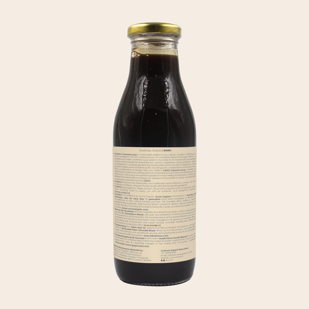 The Combination of Dhaga Mishri and vanilla in CHOCI Caramel syrup creates a deliciously sweet and soothing elixir that can be enjoyed and also a nourishment for the body.
