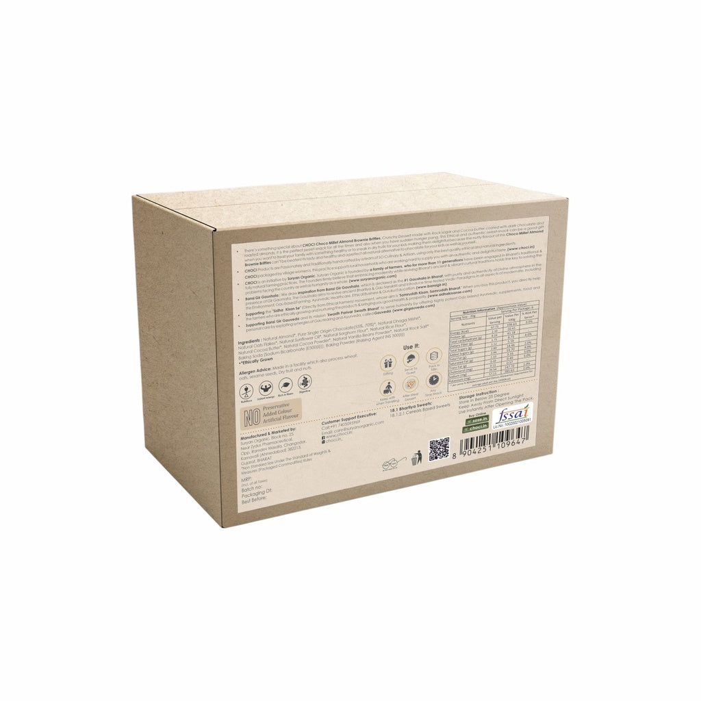 This ethical and authentic snack can be a good gift when you want to treat your family to something healthy orsneak in dry fruits for your kids without them complaining at all because the nutty flavor of this Choco Millet Almond Brownie Brittle can't be beaten! It’s both tasty and healthy and a perfect all-natural alternative to chocolate for your kids as well as yourself.