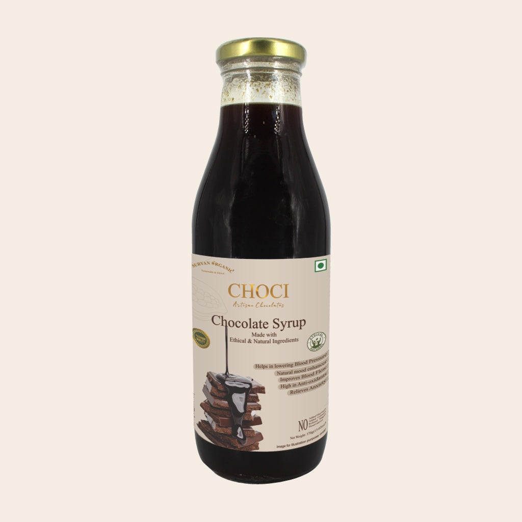 CHOCI Chocolate Syrup is a healthier alternative to traditional chocolate syrups, as it is made from 100% plant-based natural ingredients like unrefined Dhaga Mishri which retains more of the natural molasses and nutrients and is also a traditional Ayurvedic remedy helps in balancing the doshas, particularly Vata and Pitta.