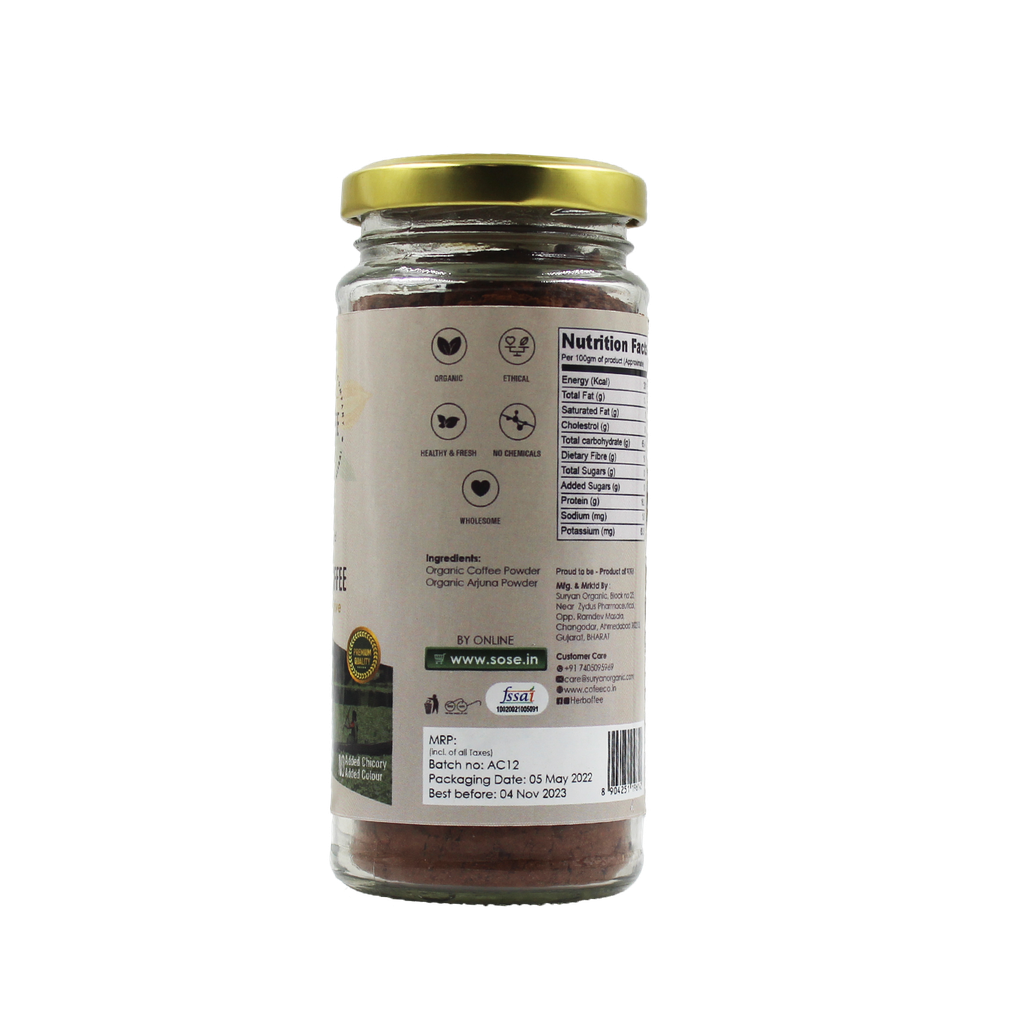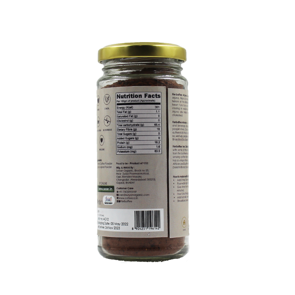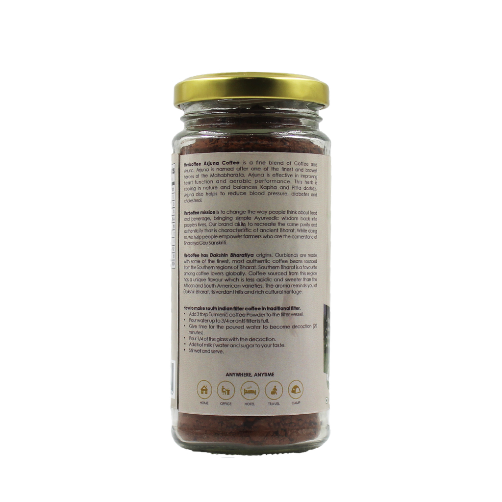 Herboffee Arjuna Coffee is a fine blend of Coffee and Arjuna. Arjuna is named after one of the finest and bravest heroes of the Mahabharata.