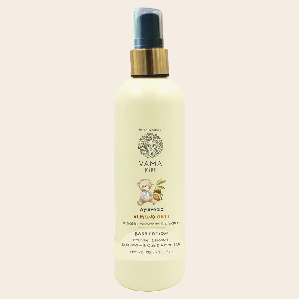 Vama Almond Oats is a luxuriant and light natural baby lotion carefully crafted with pure Almond Oil and Oats extract to hydrate babies' sensitive skin.