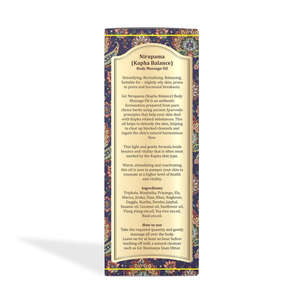 Nirupama (Kapha Balance) Body Massage Oil is an authentic formulation prepared from pure choice herbs using ancient Ayurvedic principles that help your skin deal with Kapha related imbalances.