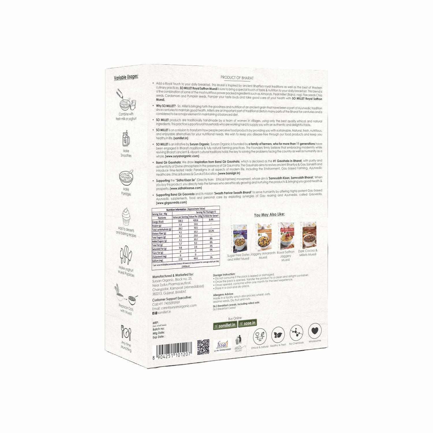 | Ingredients: - Natural Brown Sugar*, Natural Rolled Oats*, Natural Almond*, Natural Pumpkin Seed*, Natural Flax Seed*, Natural Chia Seed*, Natural kesar(Saffron)*, Natural Cardamom Powder*, Natural Ragi (Finger Millet Flakes)*, Natural Bajra (Pearl Millet Flakes)* *Ethically Grown |